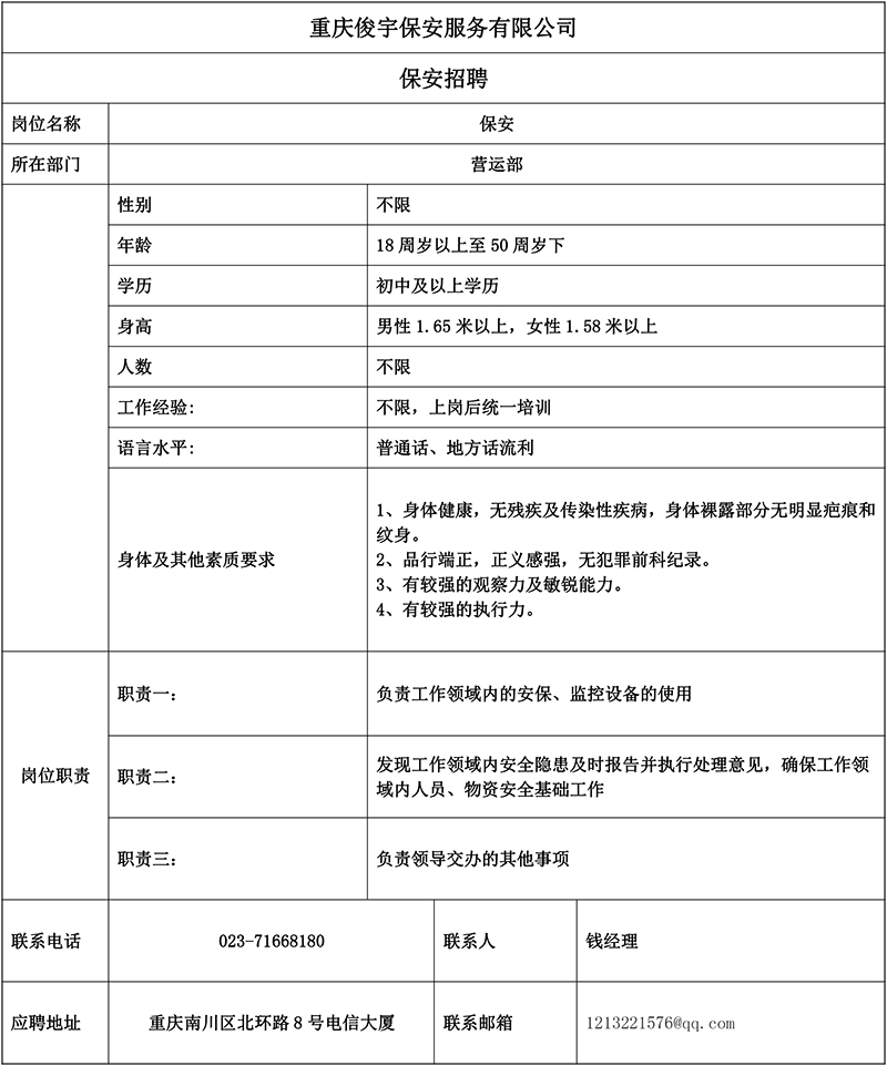 歡迎來(lái)到 重慶俊宇保安服務(wù)有限公司 !